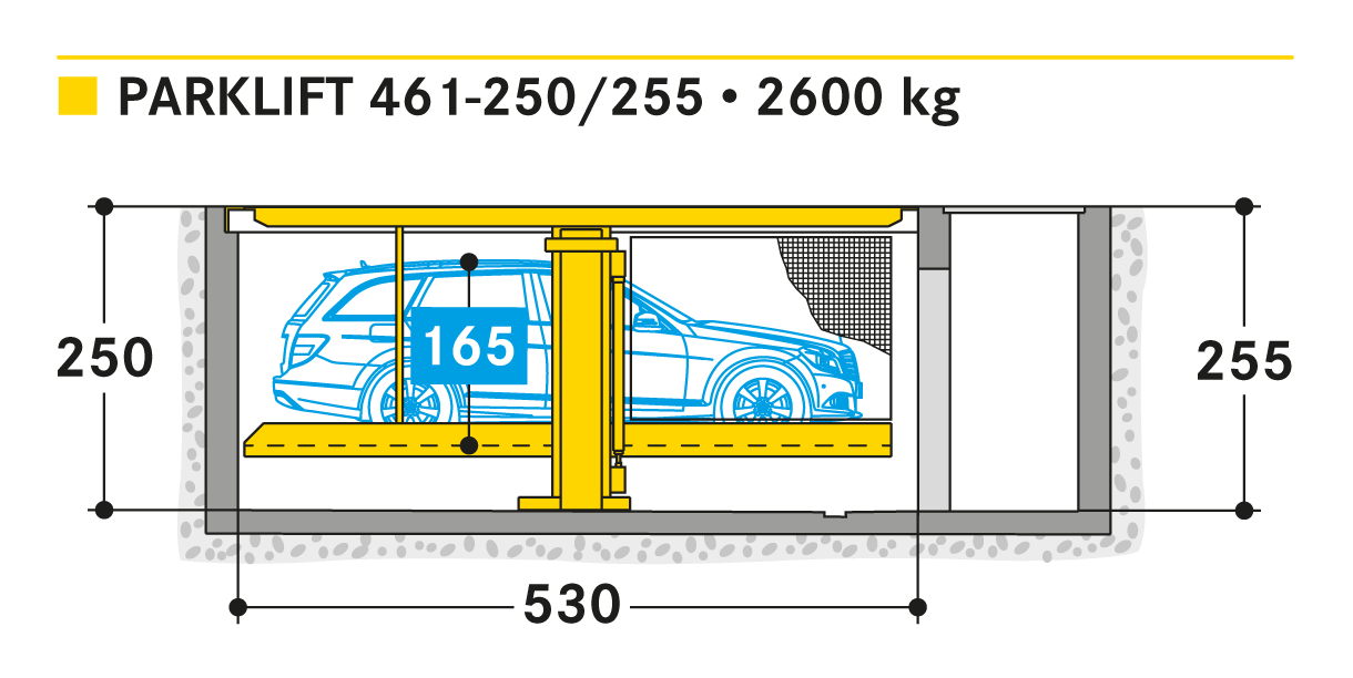 Dieses Autoparksystem wird unsichtbar in den Boden versenkt, die waagrechte unterirdische Plattform wird erst beim Anheben für den Ein- oder Ausparkvorgang sichtbar. Die Deckelplatte kann individuell nach Kundenwünschen belegt und so der Umgebung angepasst werden. Der Parklift 461 erfüllt seinen Nutzen bei Einbau in Hinterhöfen, Zufahrts- oder Gartenbereichen bei Nachrüstung von Altobjekten.