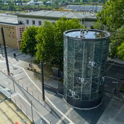 WÖHR Bikesafe in Heilbronn: 122 Räder auf Fläche mit 7,5 Metern Durchmesser - am Hauptbahnhof Heilbronn steht das modernste Fahrradparkhaus Deutschlands