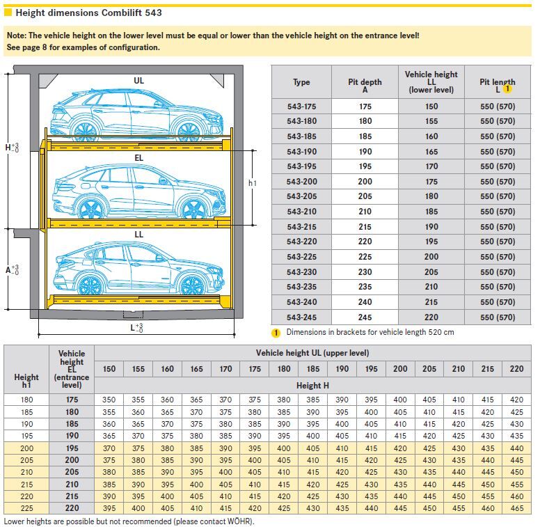 - High user-friendliness and parking comfort. All new Combilifts are extremely flexible as we can create a new height every 5 cm to park vehicles from 150 cm to 220 cm high.