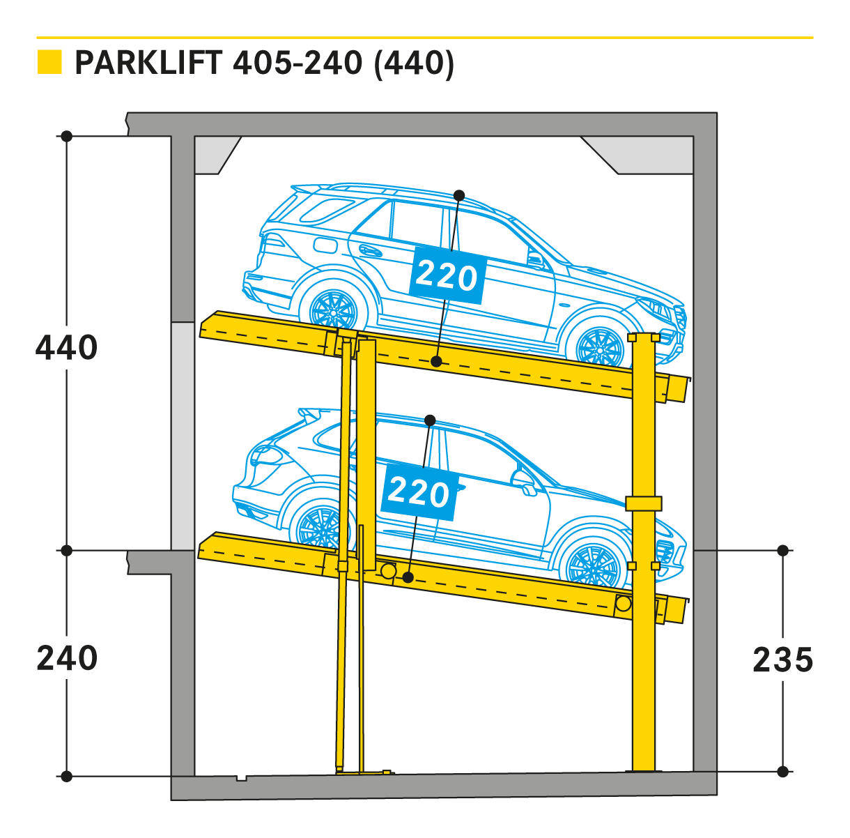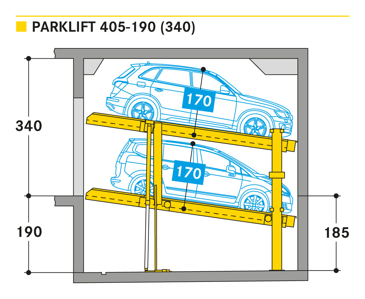 The Parklift 405 replaces its predecessor Parklift 402. The advantages of the new development are in the reduced assembly dimensions with unchanged vehicle dimensions.