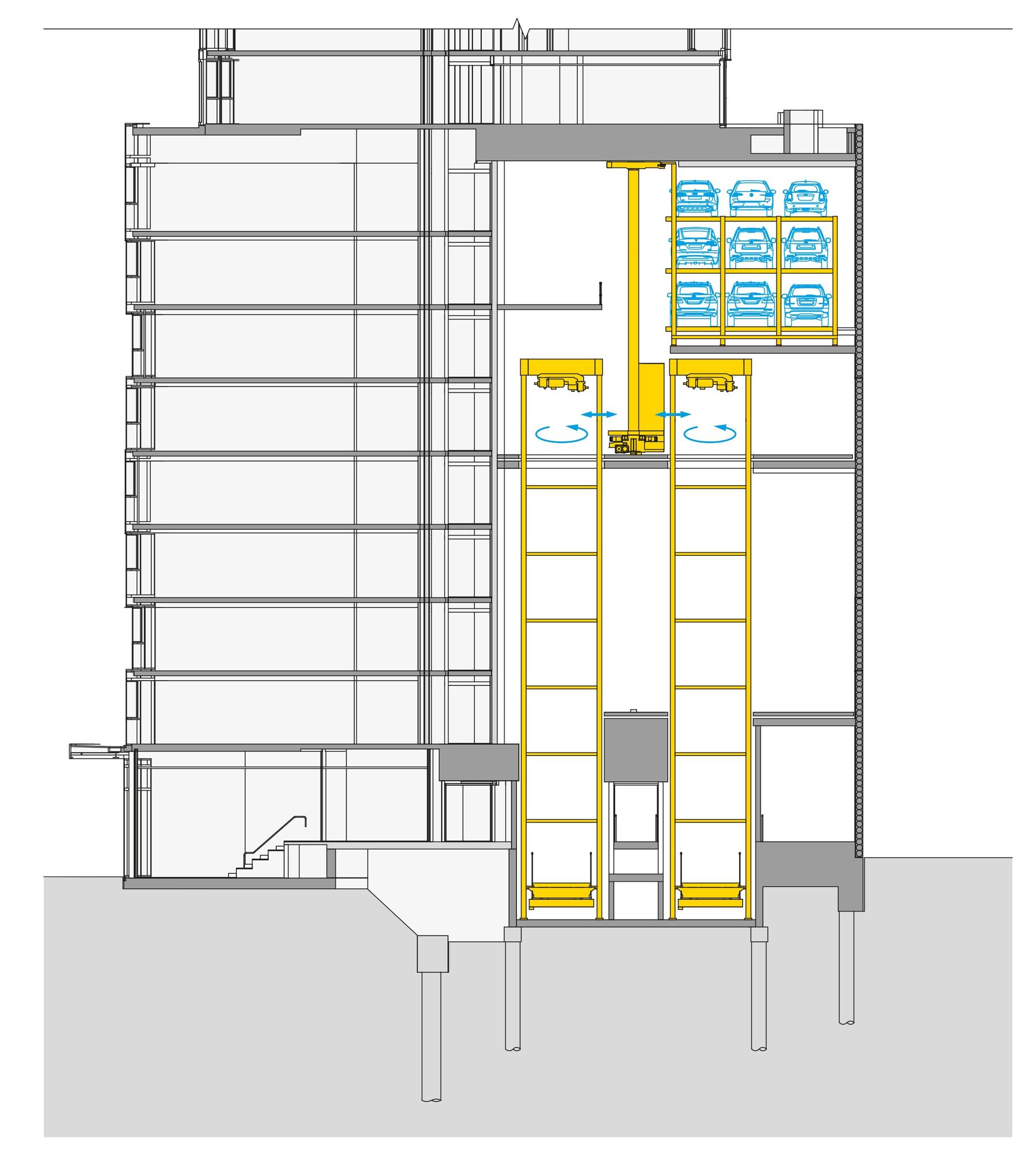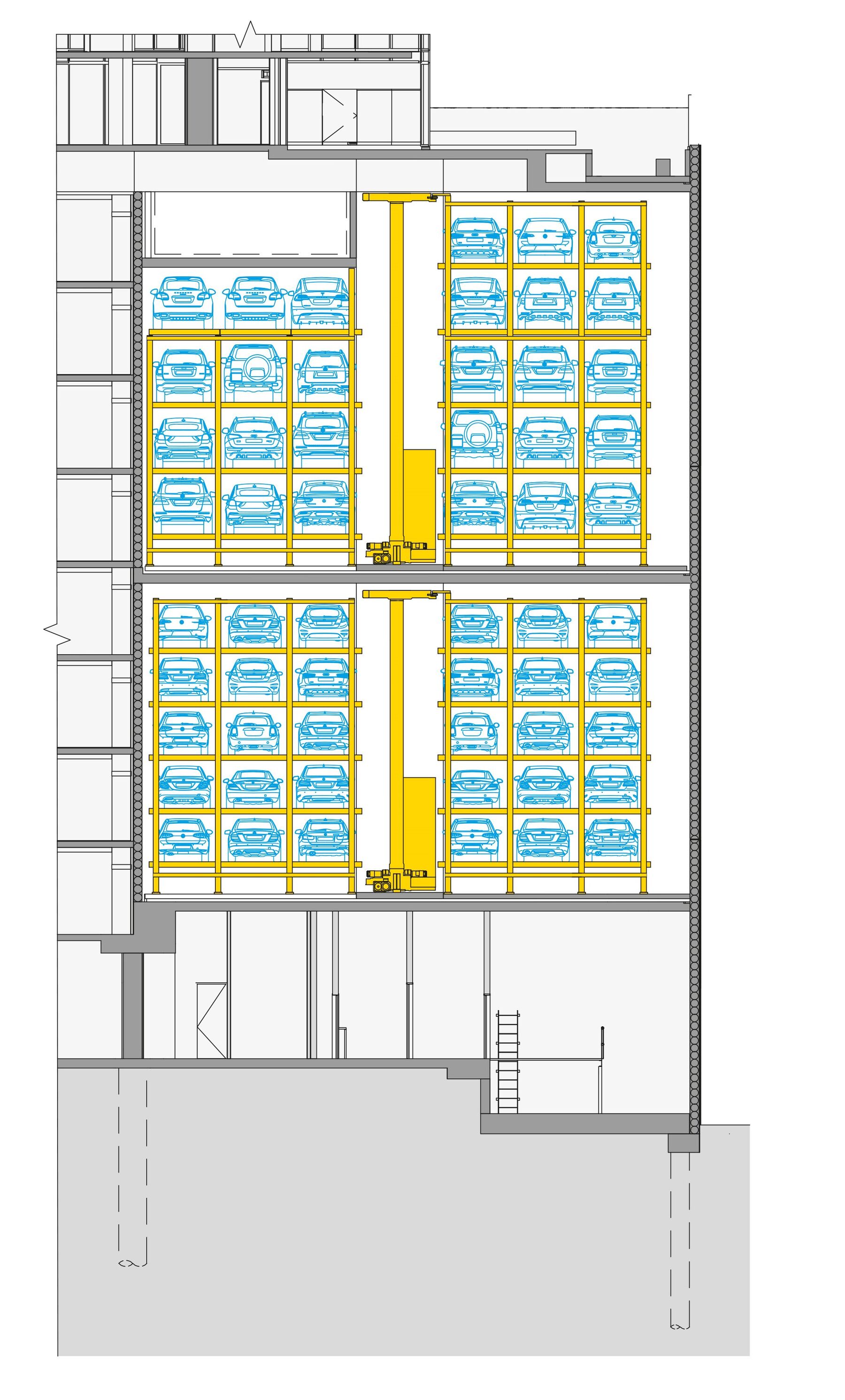 Melbourne, Shadow Play: High rack for 150 cars in the Multiparker 740